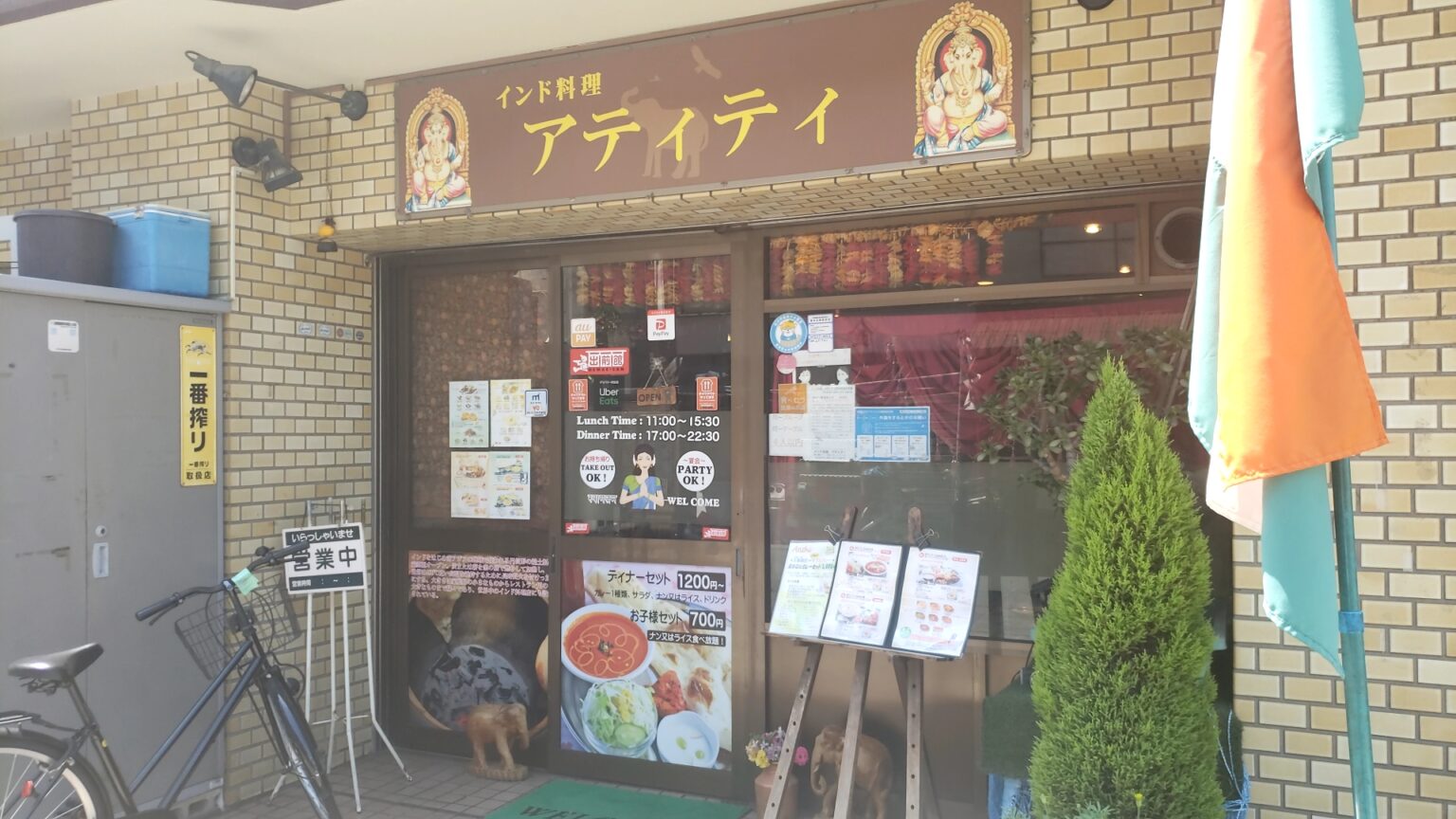 テーブルにはテーブルクロスがかかっており、壁にはメニューやインド風?の壁掛けがある。また大型の液晶がテレビを見ながら食事が取れる。